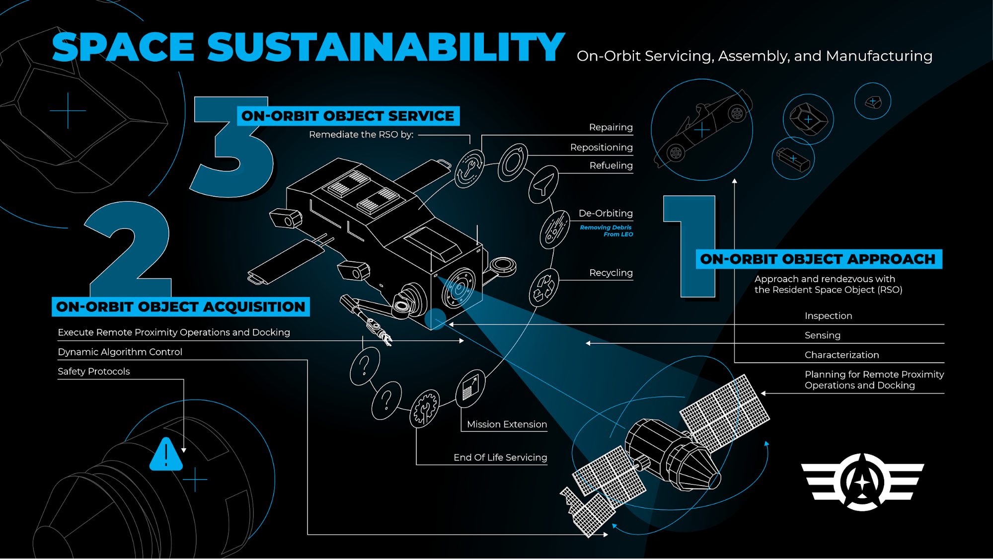 As congestion and debris threaten the long-term sustainability of the space domain, Orbital Prime will transition agile, affordable, and accelerated on-orbit servicing, assembly, and manufacturing space capabilities to build the foundation for space logistics. On-orbit capability will be demonstrated on an accelerated timeline in two to four years.